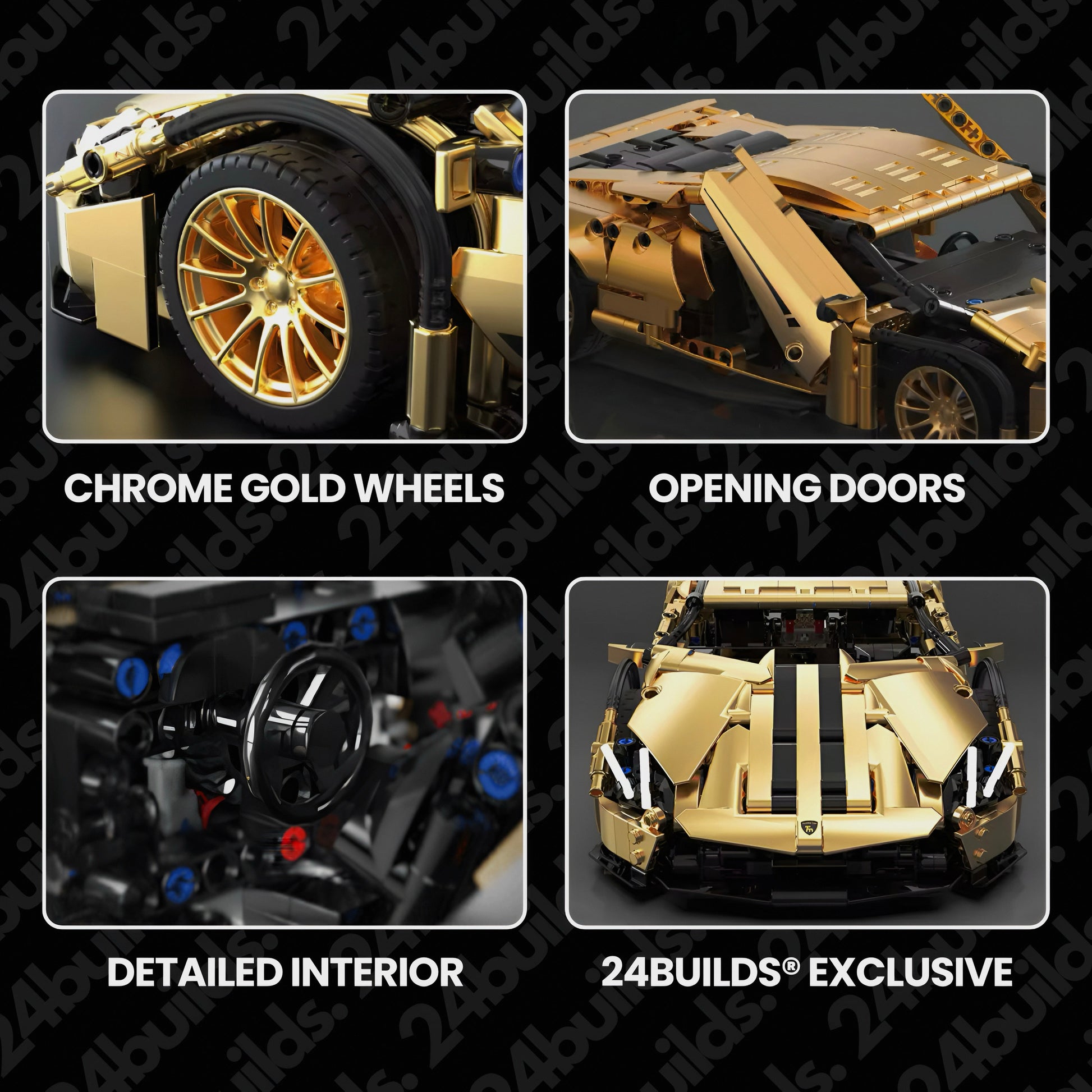 1:14 Gold Lamborghini P1 Sports Car Sets, Collectable Model for Boys Men Teens (1309 Pcs)
