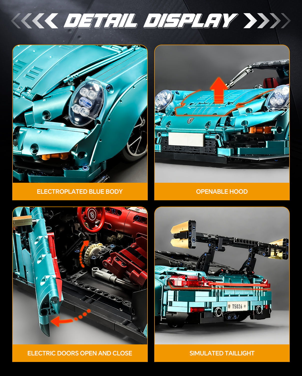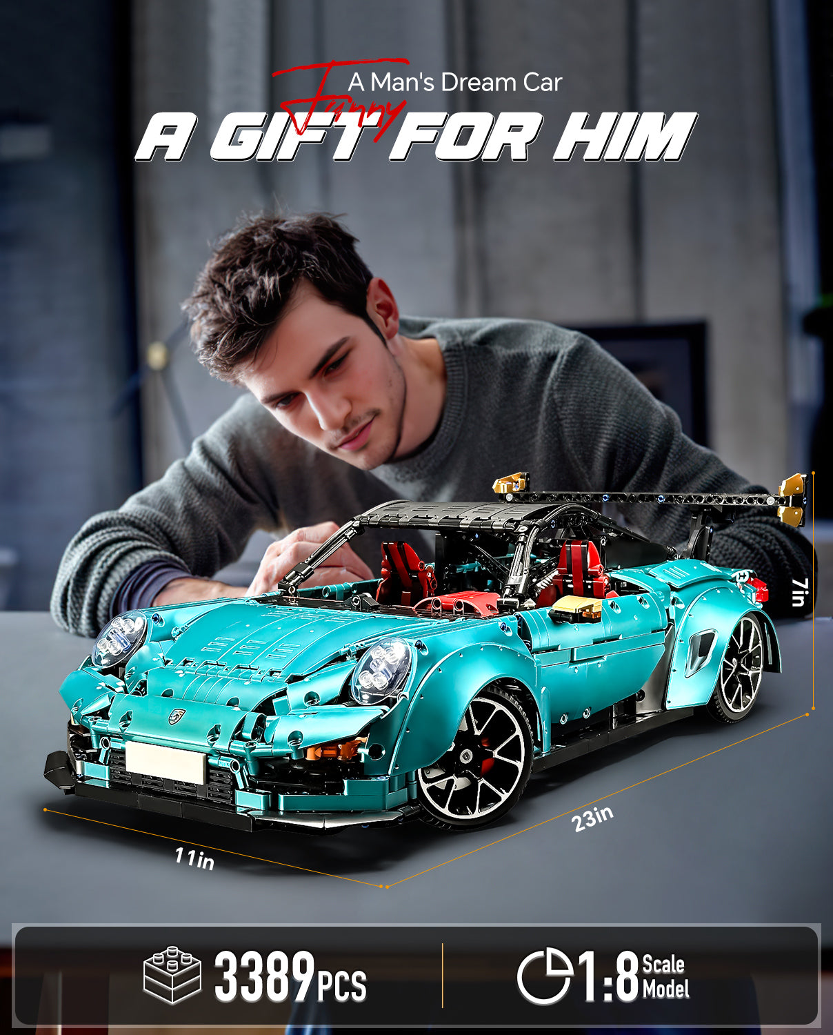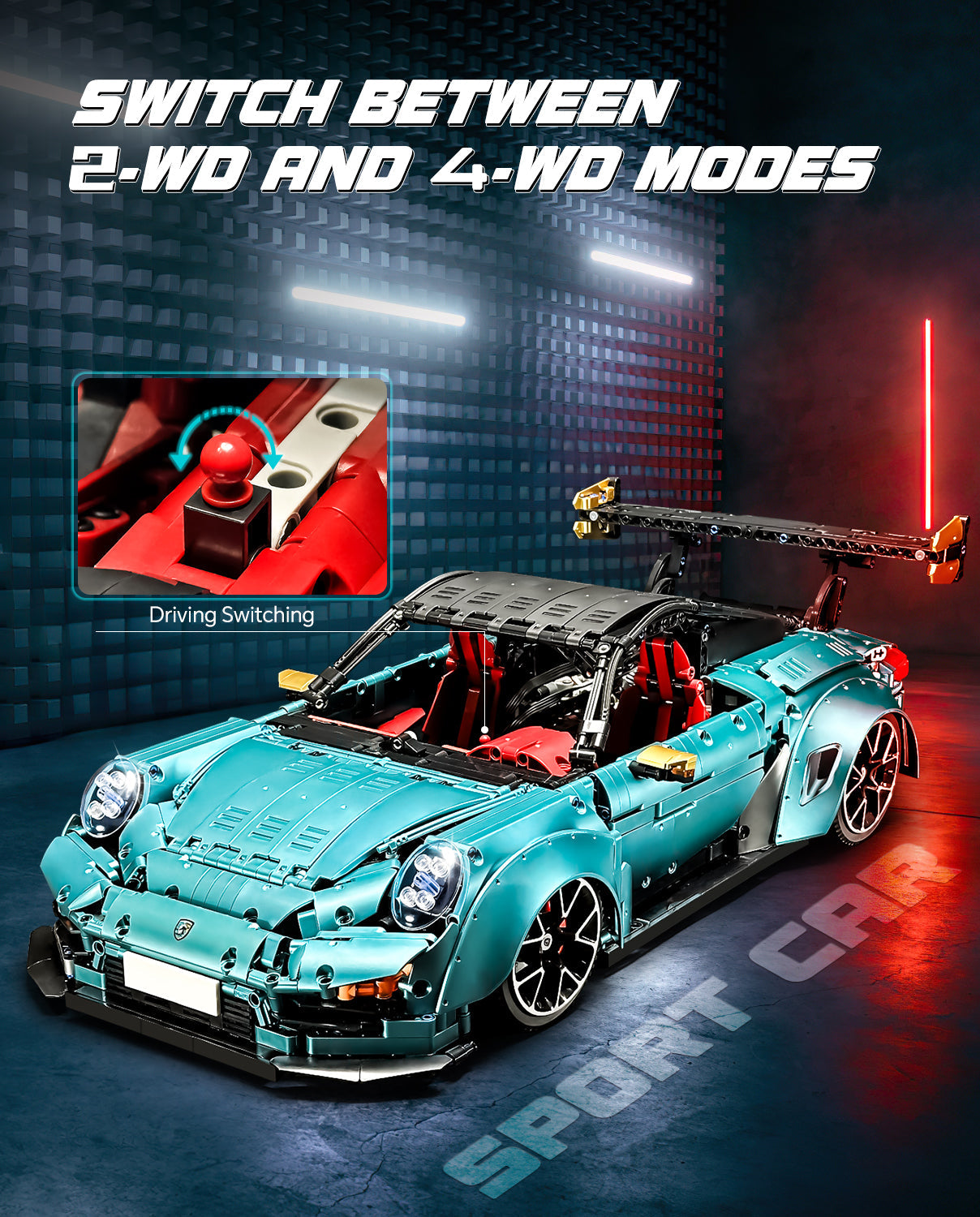 1: 8 Blue Porsche GT2 RS with Electric Suspension Lifting, Electric Doors Remote Control Model (3389 Pcs)