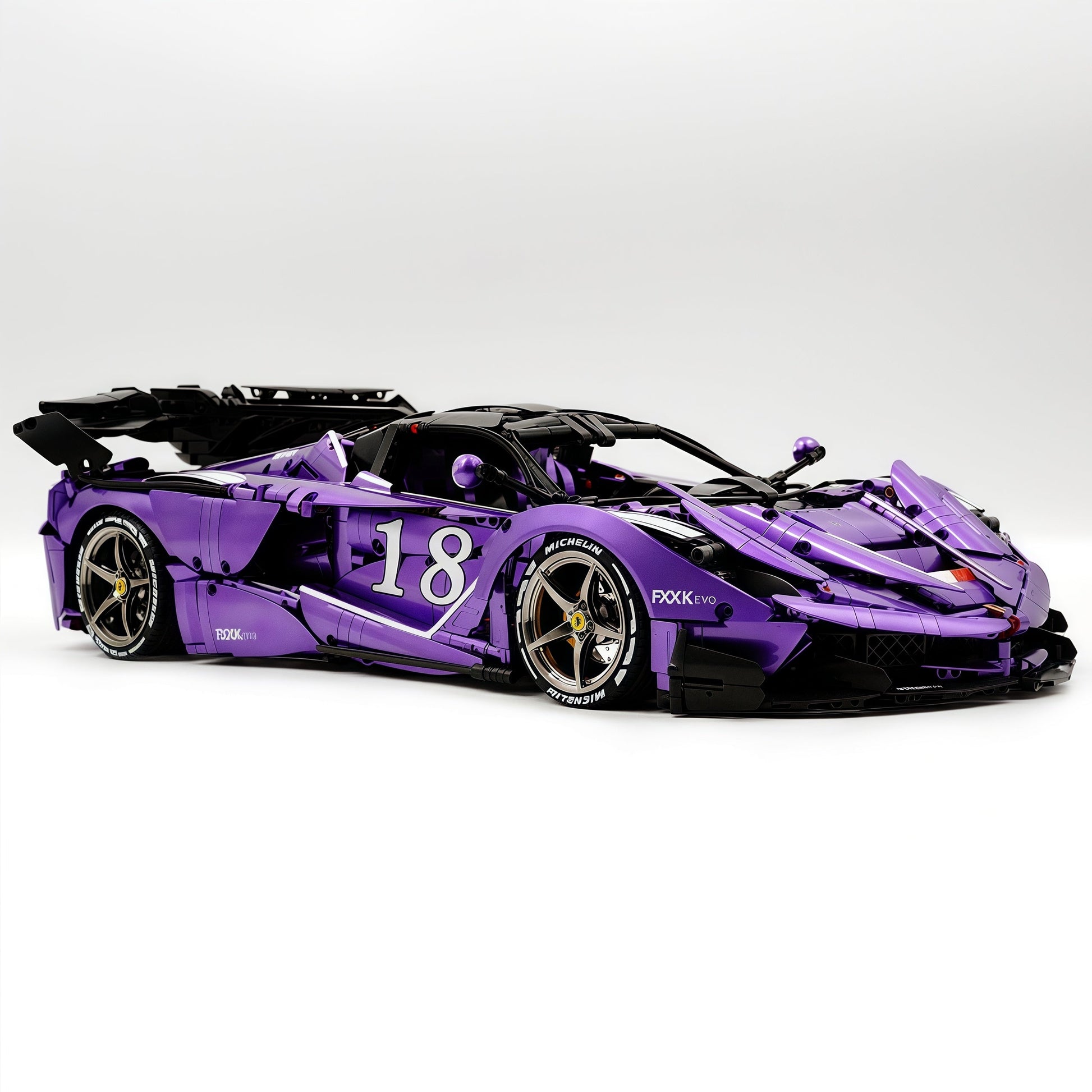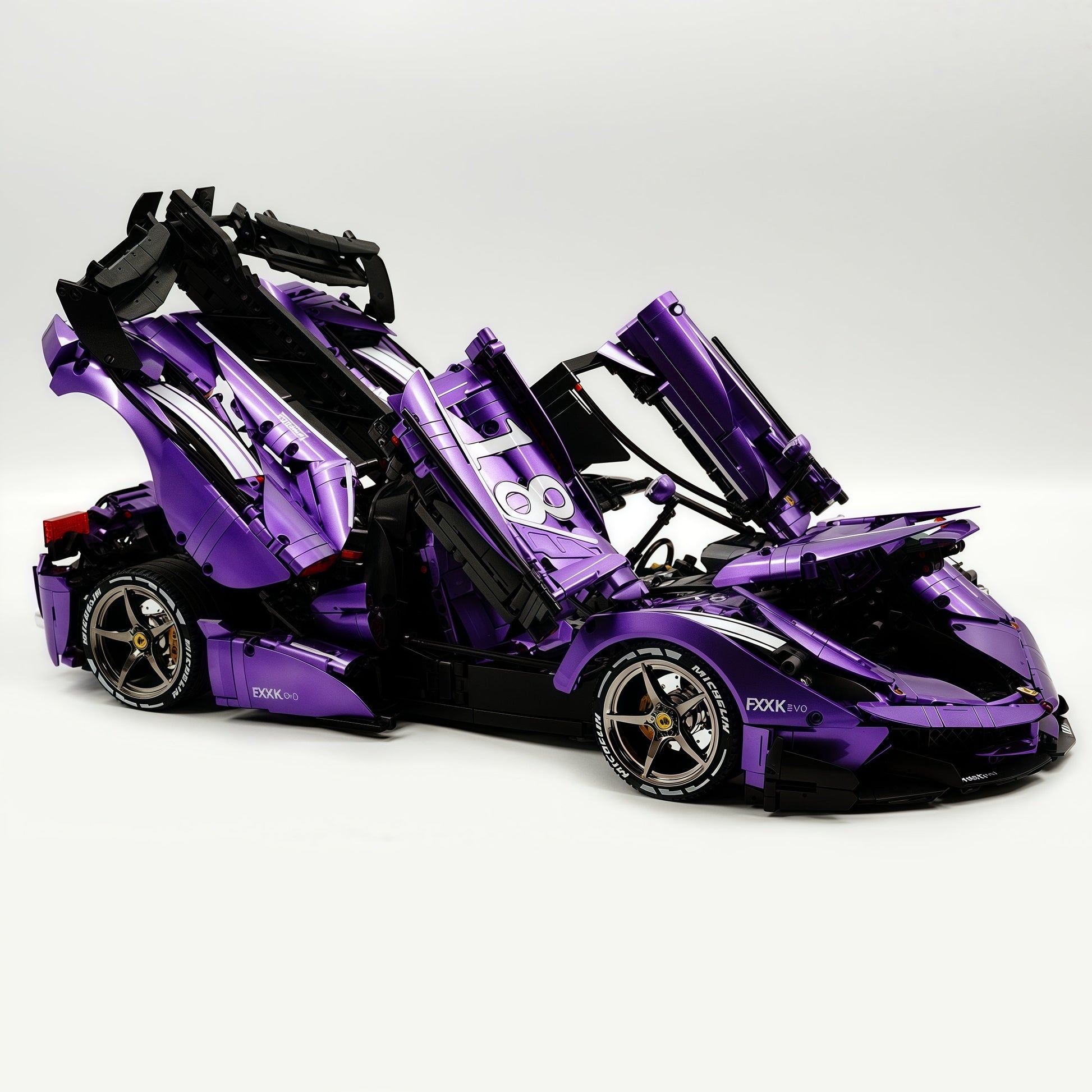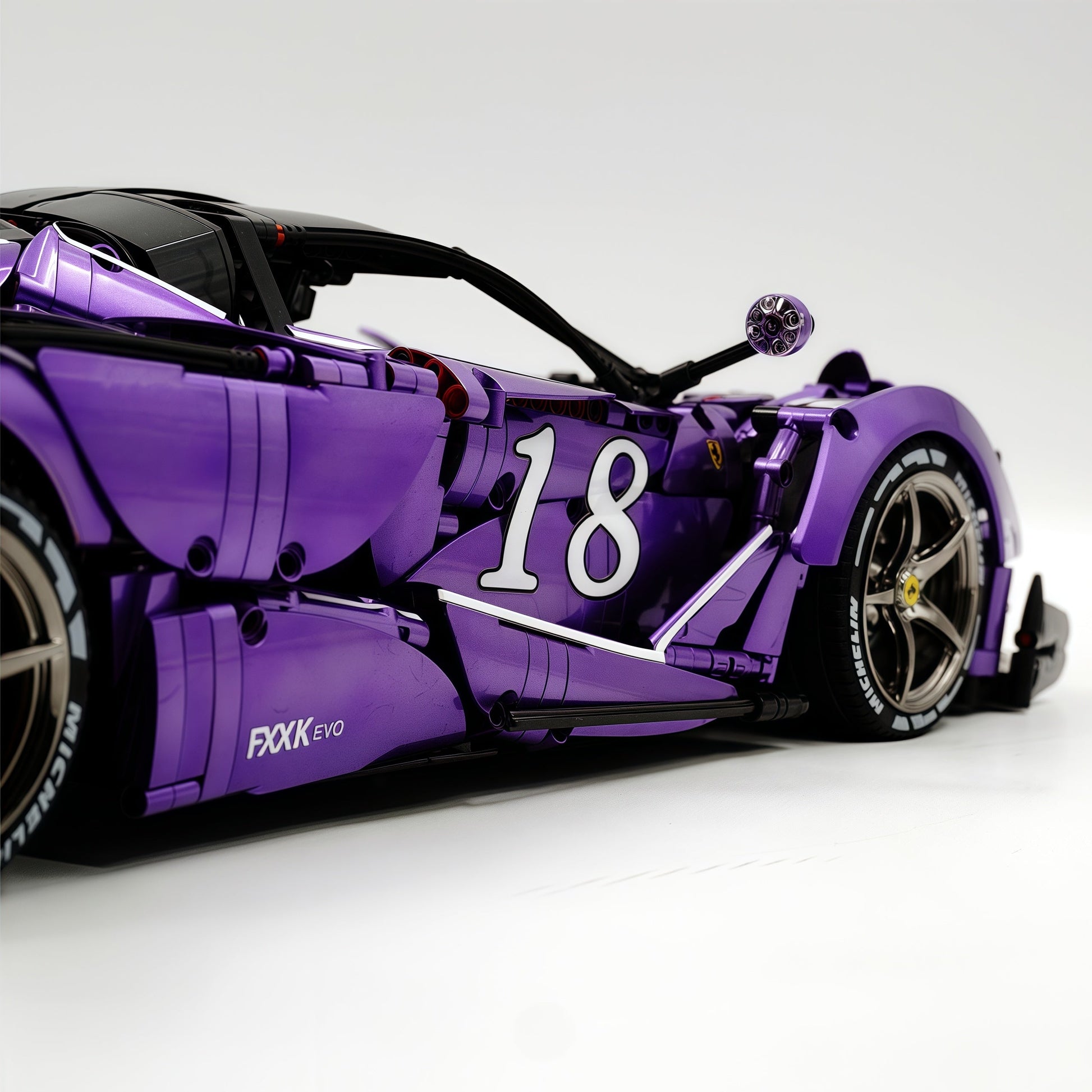 1: 8 LaFerrari FXXK EVO Custom Modified, Rare Amethyst Color Enamel Paint, Oversized Rear Wing (4739 Pcs)