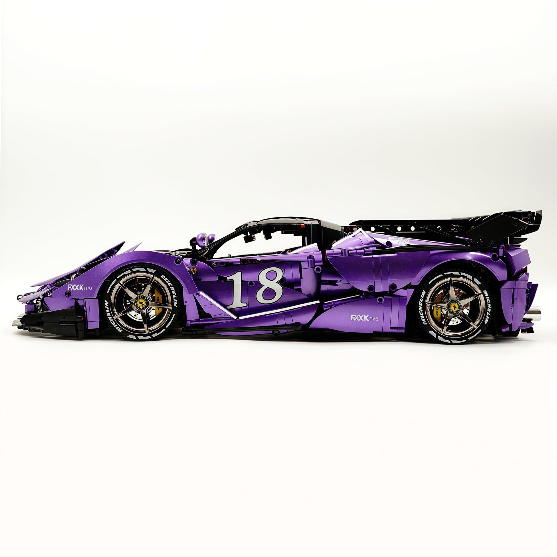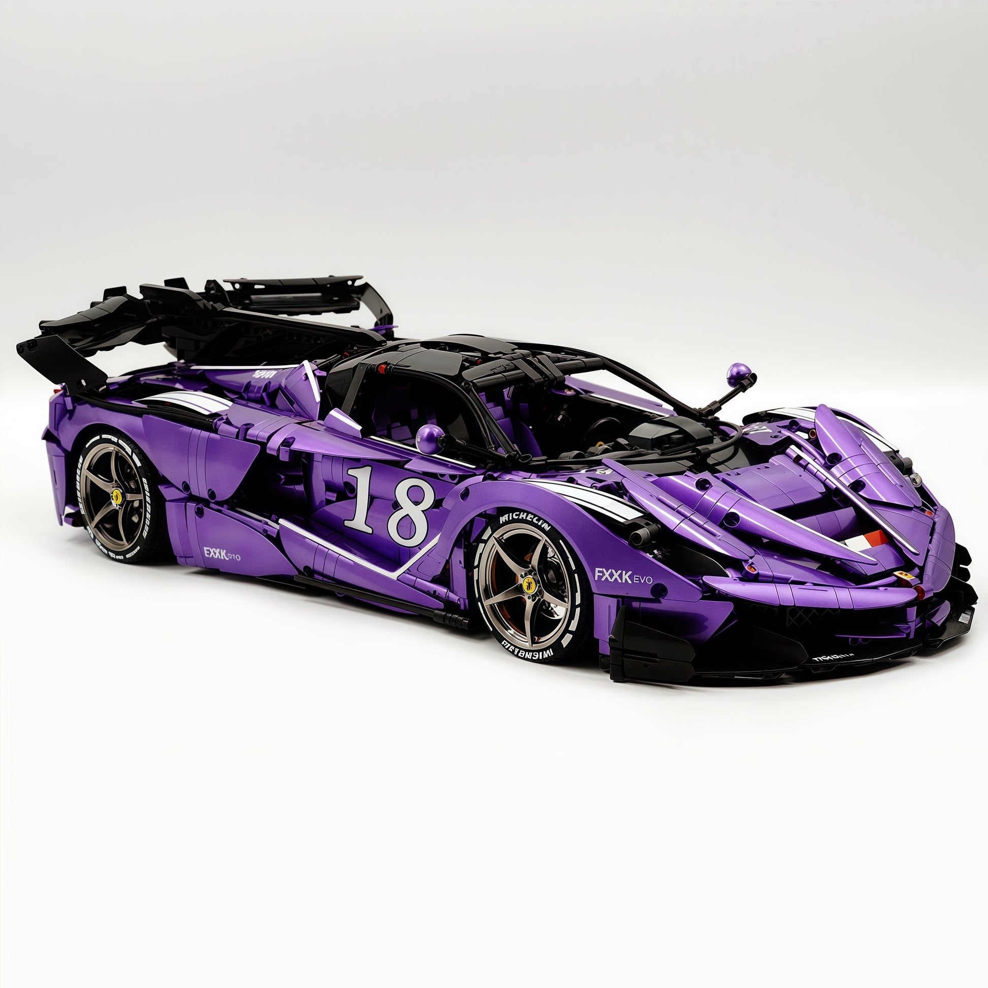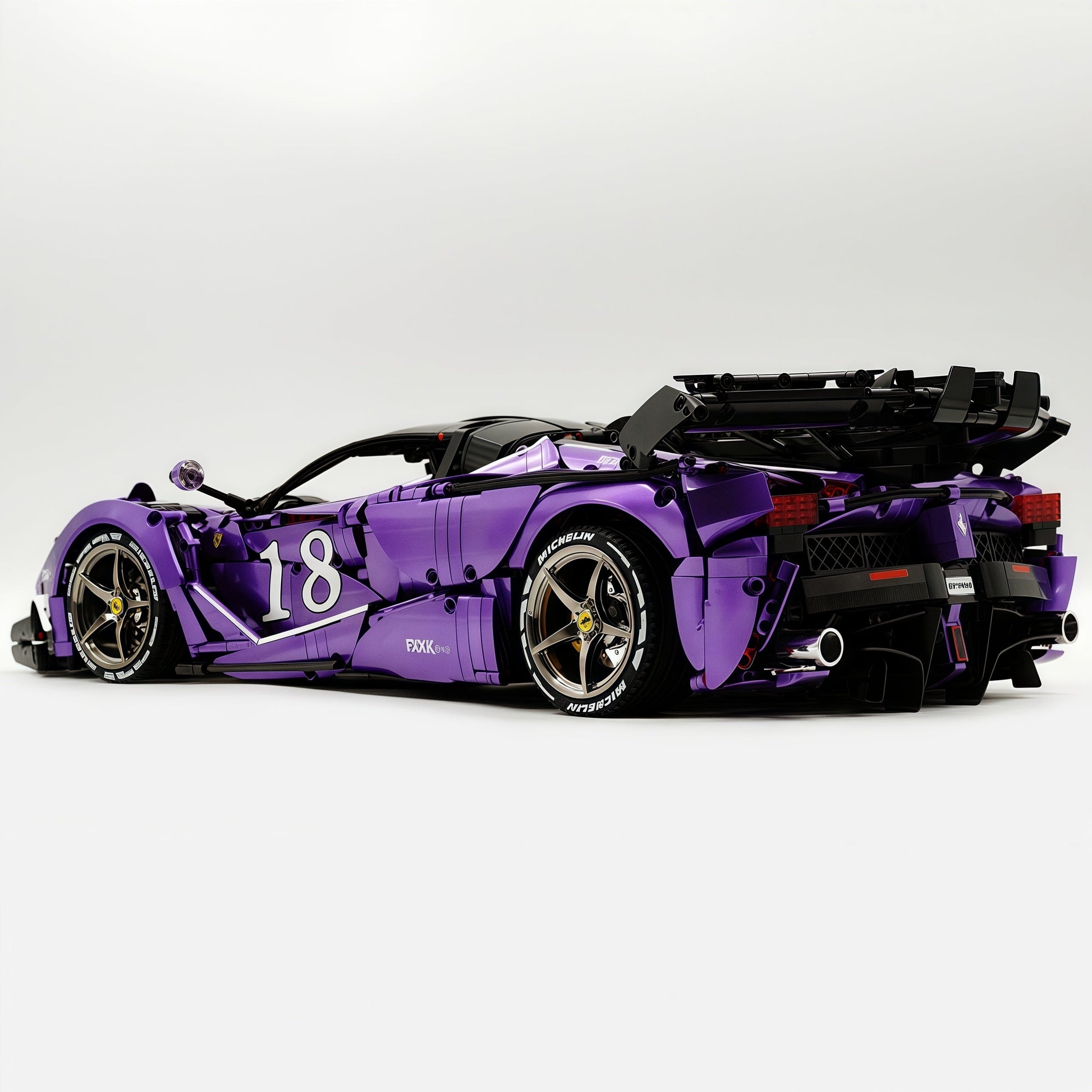 1: 8 LaFerrari FXXK EVO Custom Modified, Rare Amethyst Color Enamel Paint, Oversized Rear Wing (4739 Pcs)