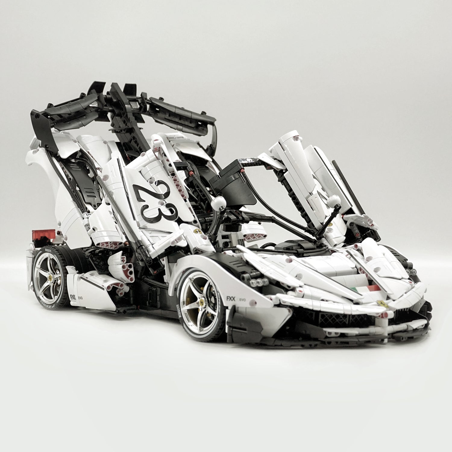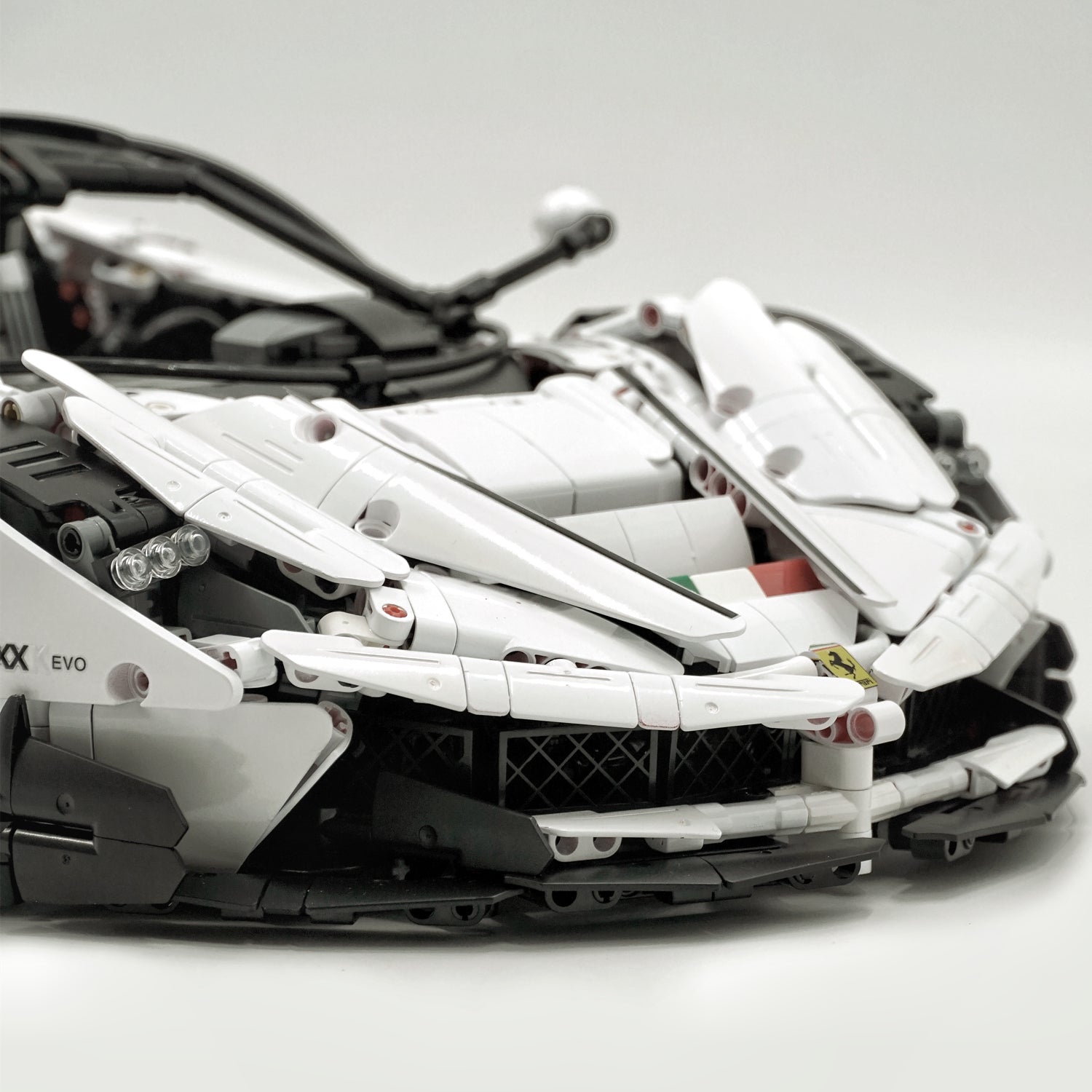 1: 8 LaFerrari FXXK EVO Custom Modified, Rare Pearl White Enamel Paint, Oversized Rear Wing (4739 Pcs)