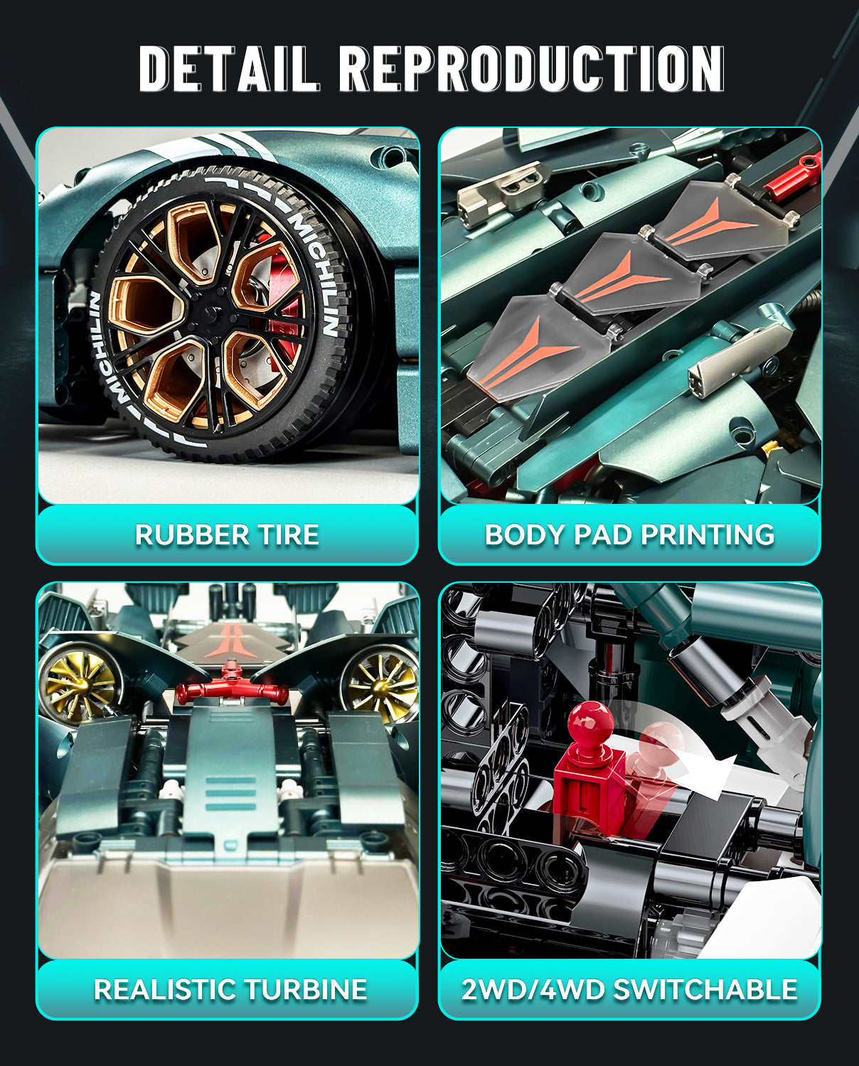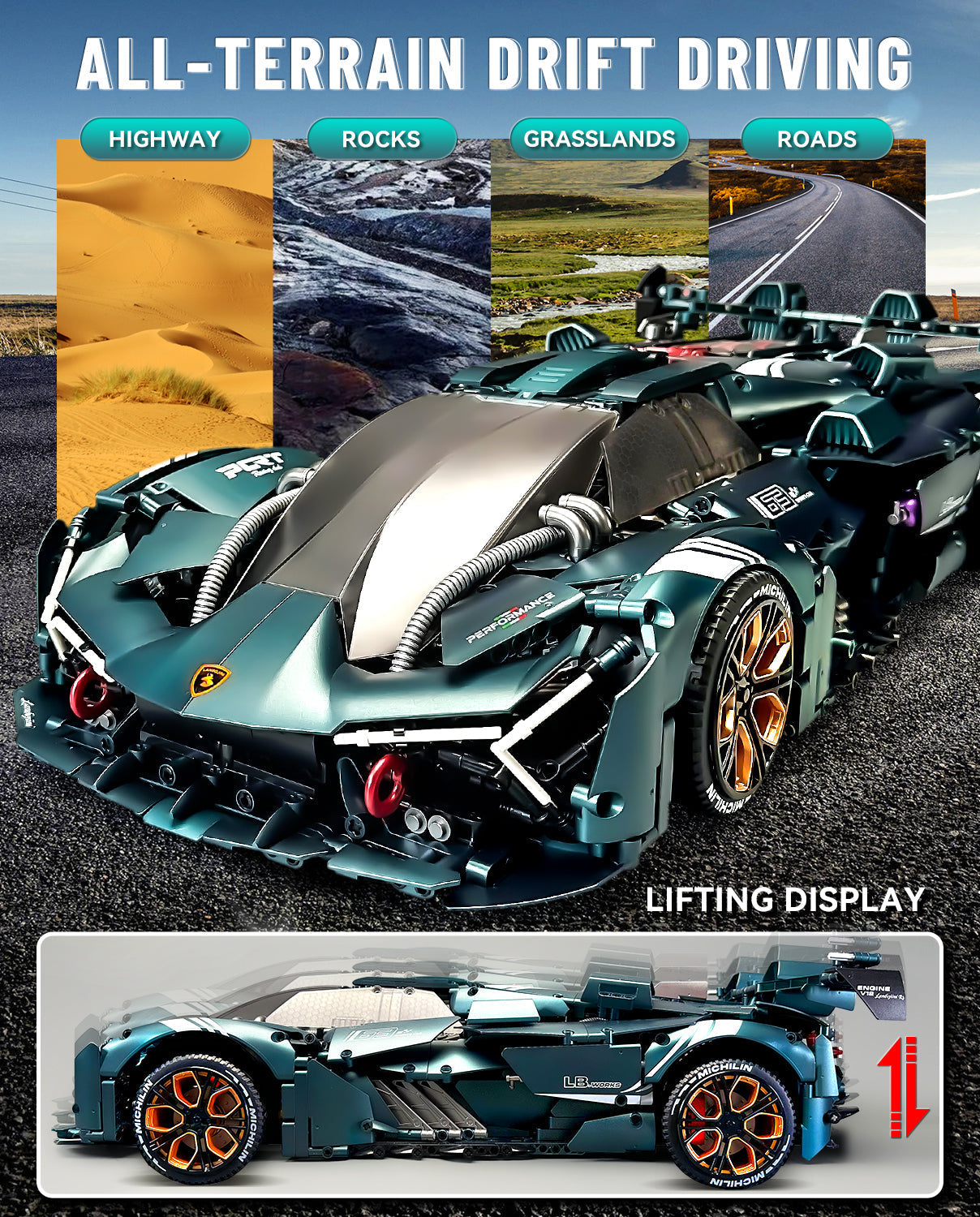 1: 8 Lamborghini Terzo Millennio SuperCar with Electric Suspension Lifting, Electric Doors Remote Control Model (3492 Pcs)