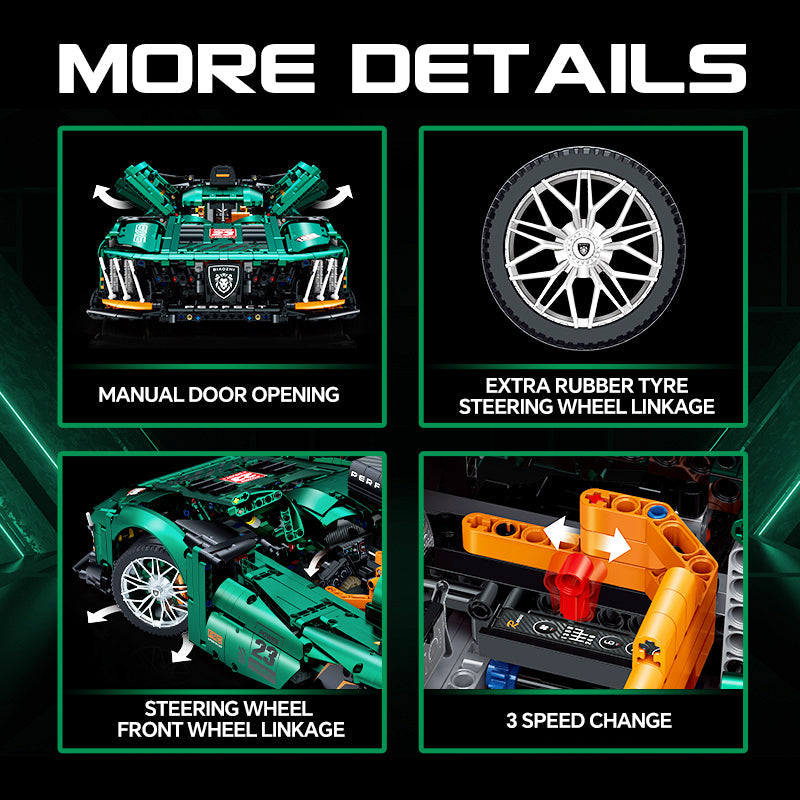 1: 8 Le Mans 9×8 RaceCar Building Sets with Remote Control, Electric Lift Tail Wing, Fluorescent Headlights (3746 Pcs)