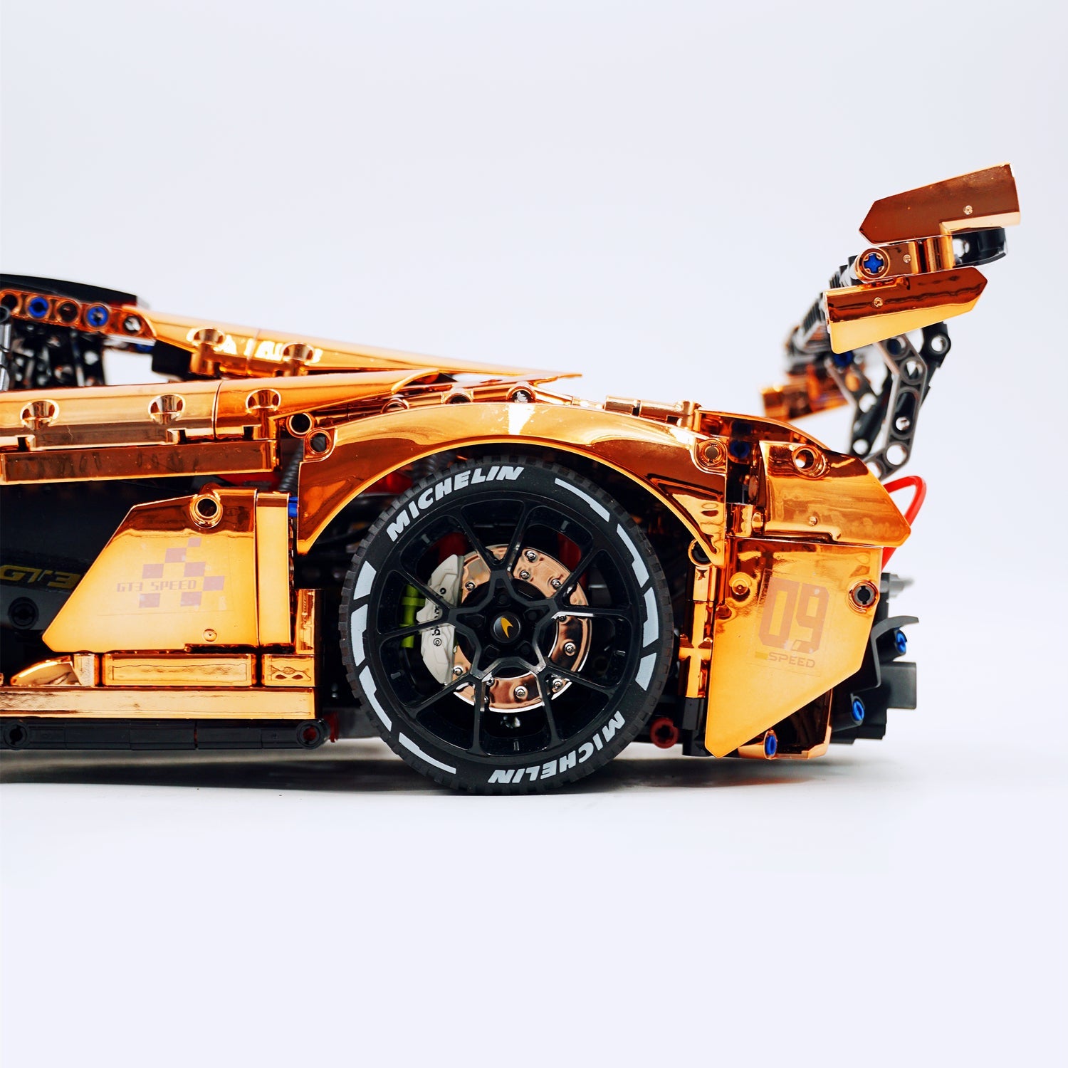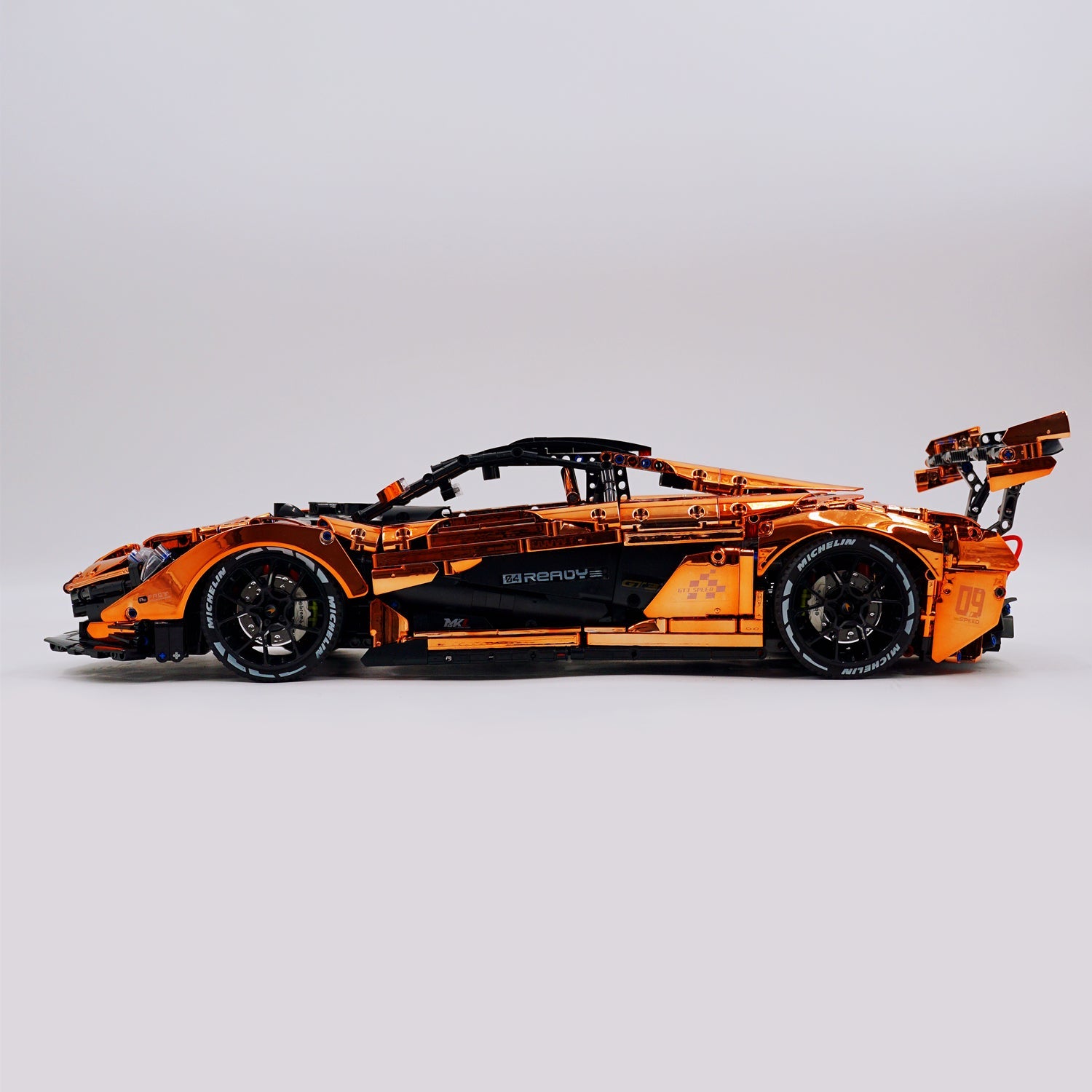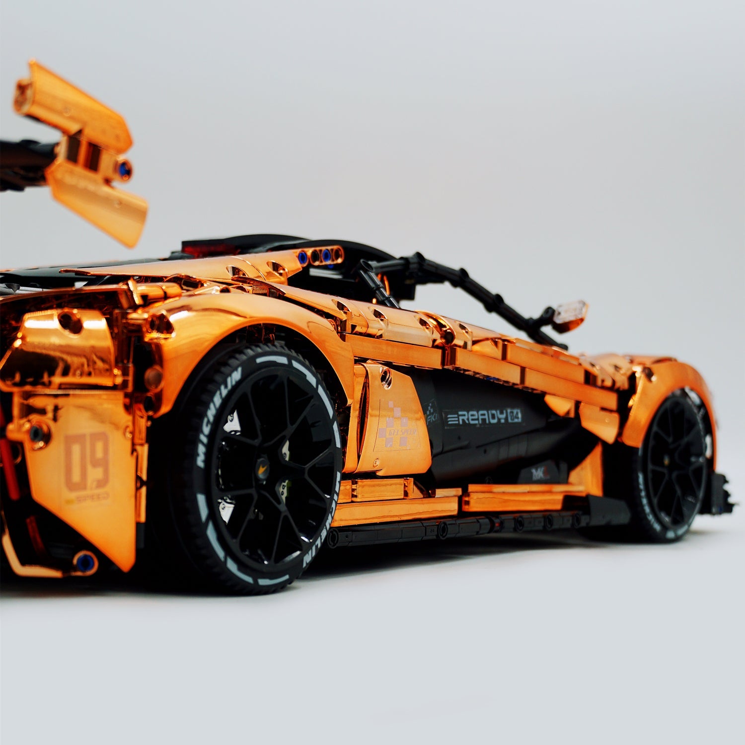 1: 8 McLaren P1 Orange Gold Plating Supercar Building Sets with Remote Control, Electric lift tail, Electric Doors (3568 Pcs)
