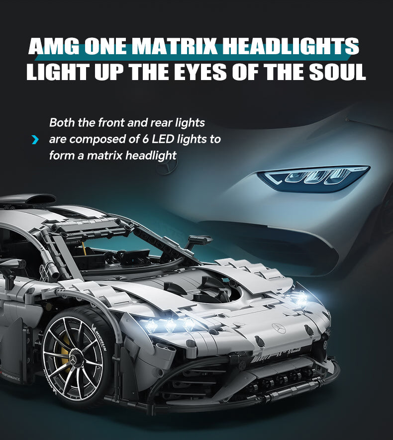 1: 8 Mercedes AMG ONE Building Set with Remote Control, Fully Detailed Simulation, The Ultimate Collectible, Electric Dutterfly Doors, Rear Wing Lifting, Controllable lights, Launch Control (3295 Pcs)