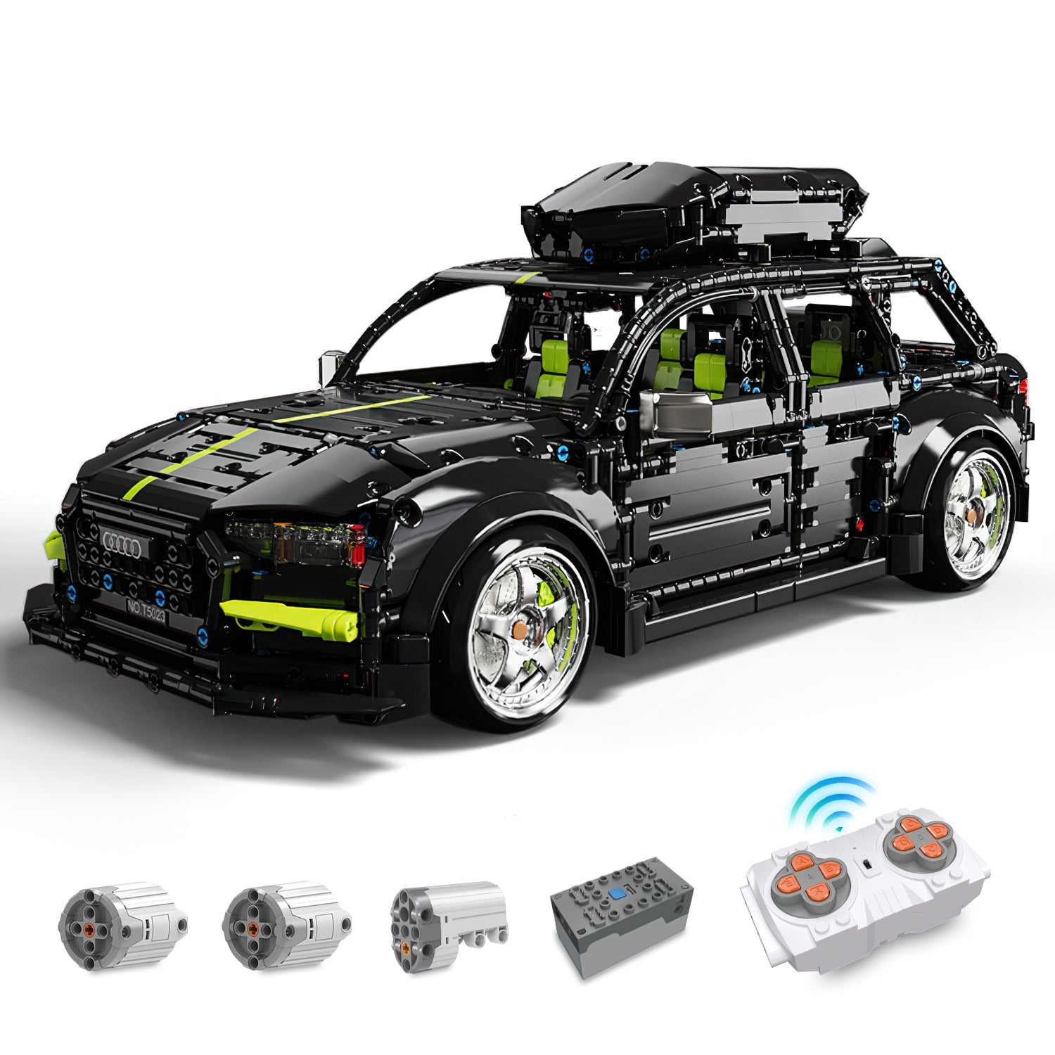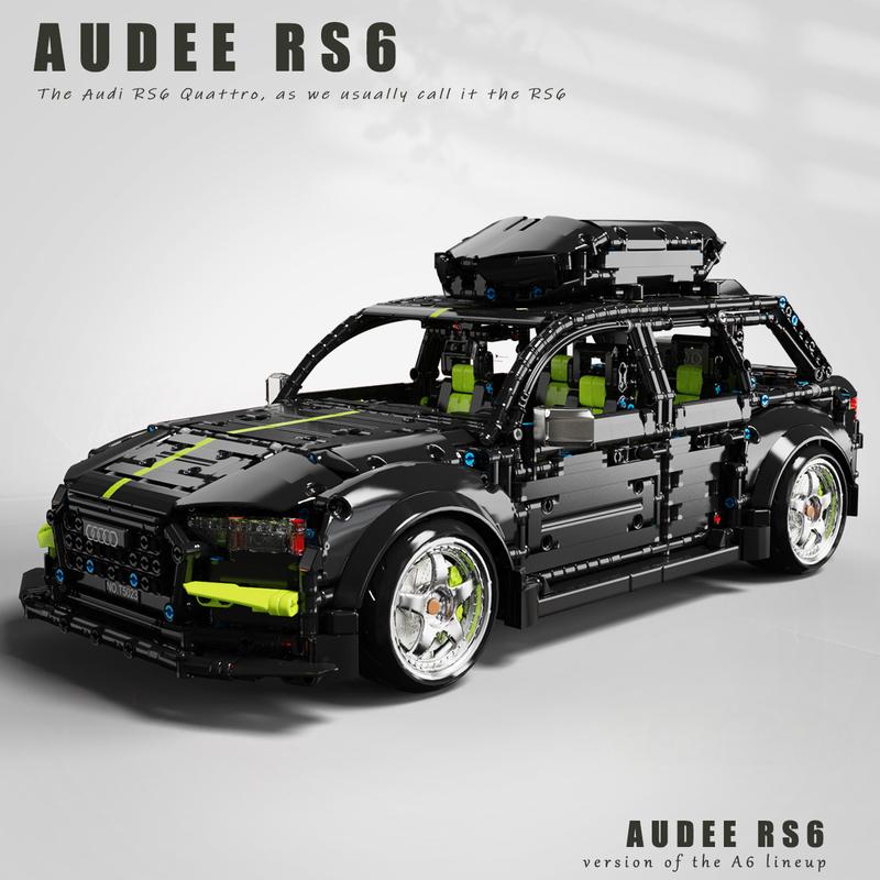 AUDI RS6 Black Warrior Set, High Detail Restoration, Travel SUV, Removable Roof Storage Box (2896 Pcs)