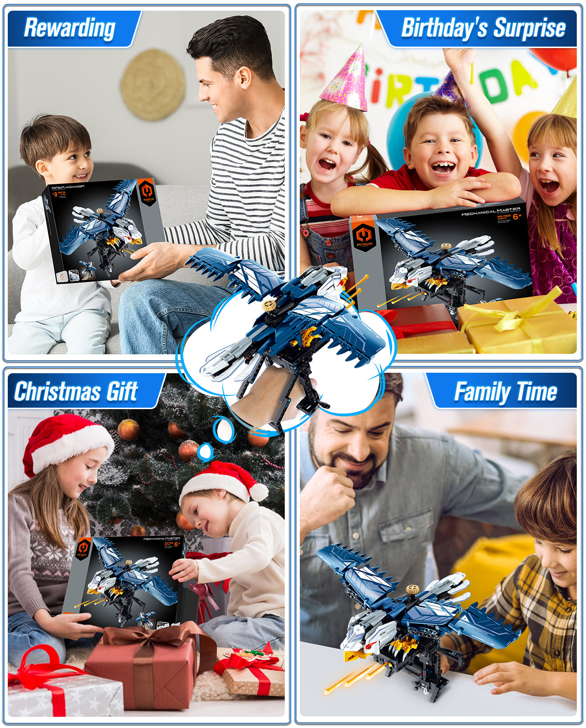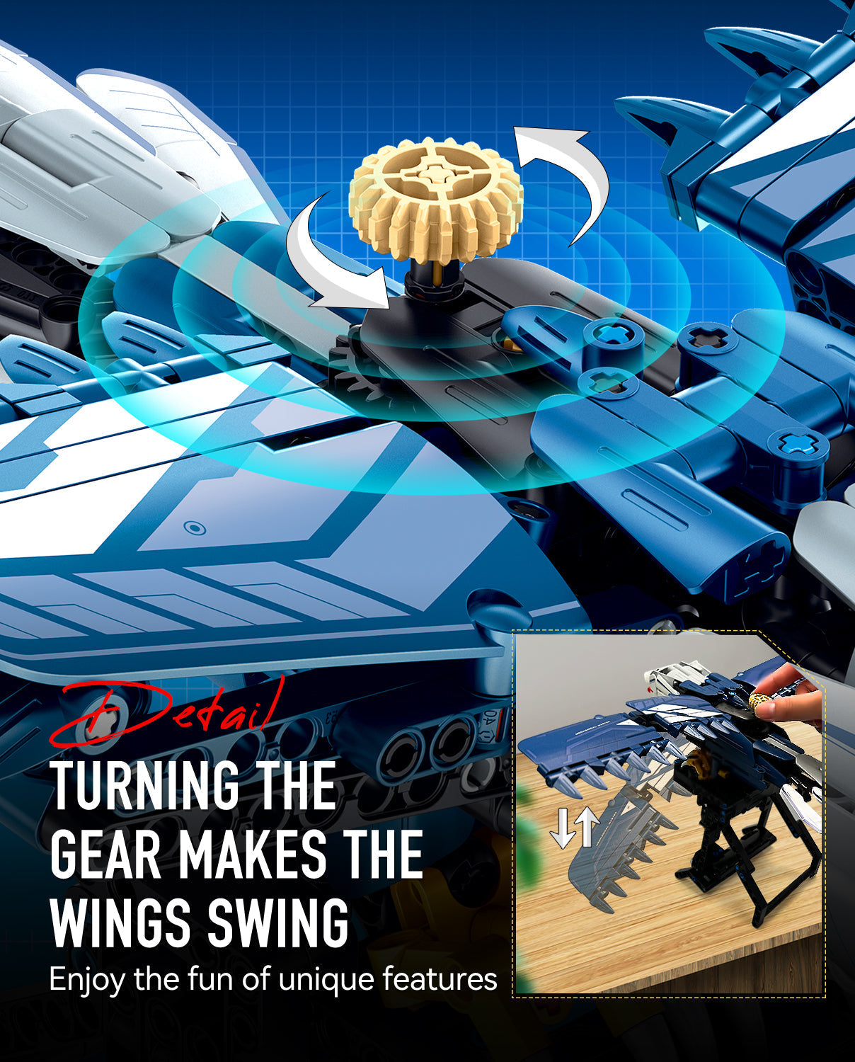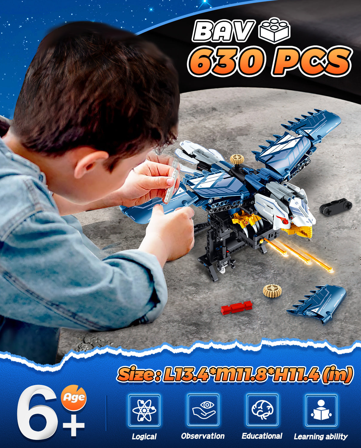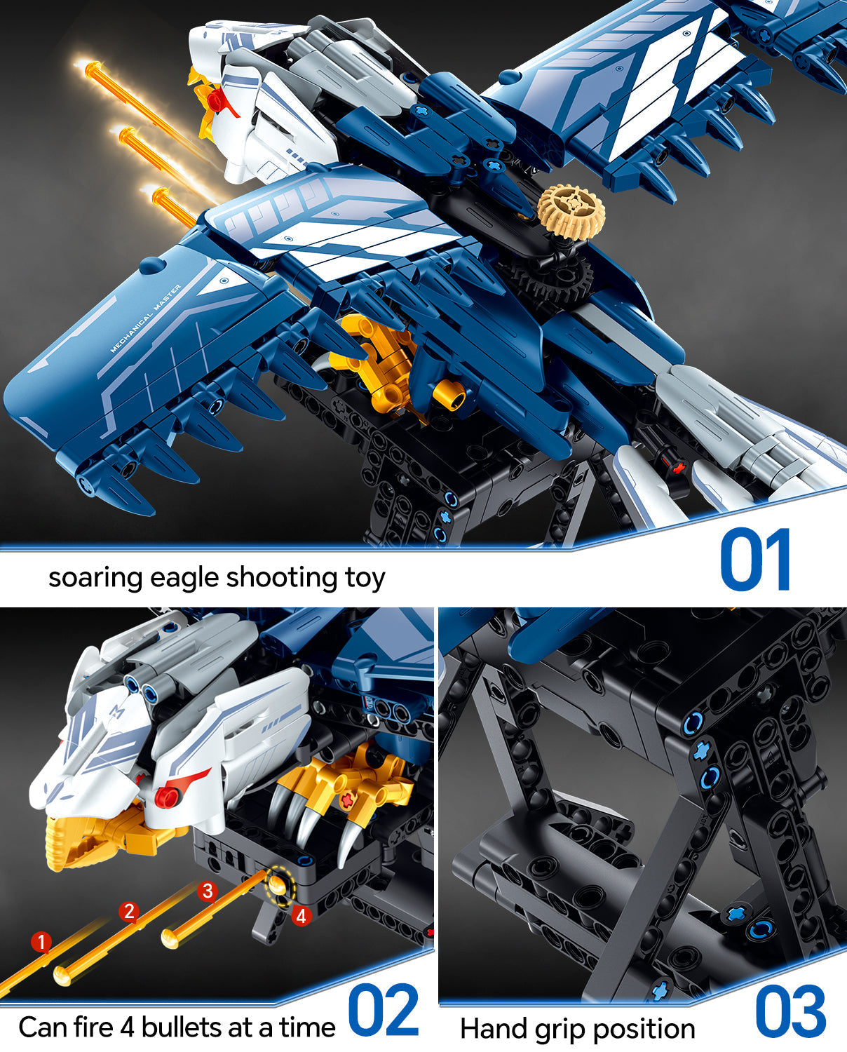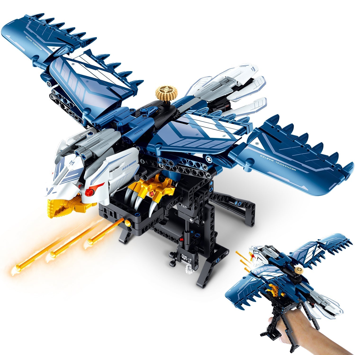 BAV Blue Eagle Hand-held Launch Toy Building Set with Movable Wings, 630Pcs