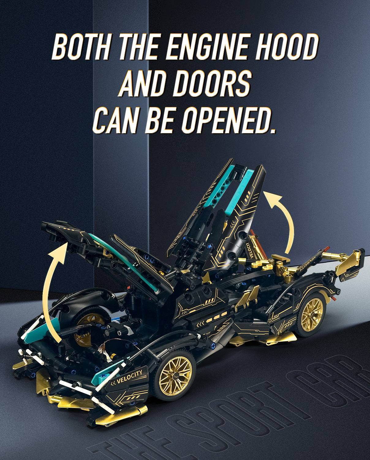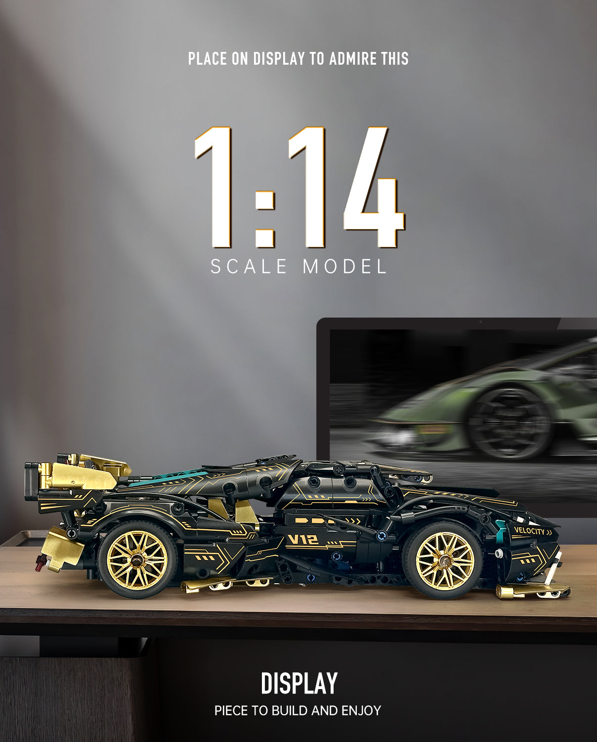 Lamborghini V12 Black Sports Car MOC Building Kits, 1:14 Car Model for Boys Men, 1124Pcs